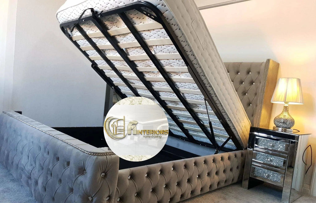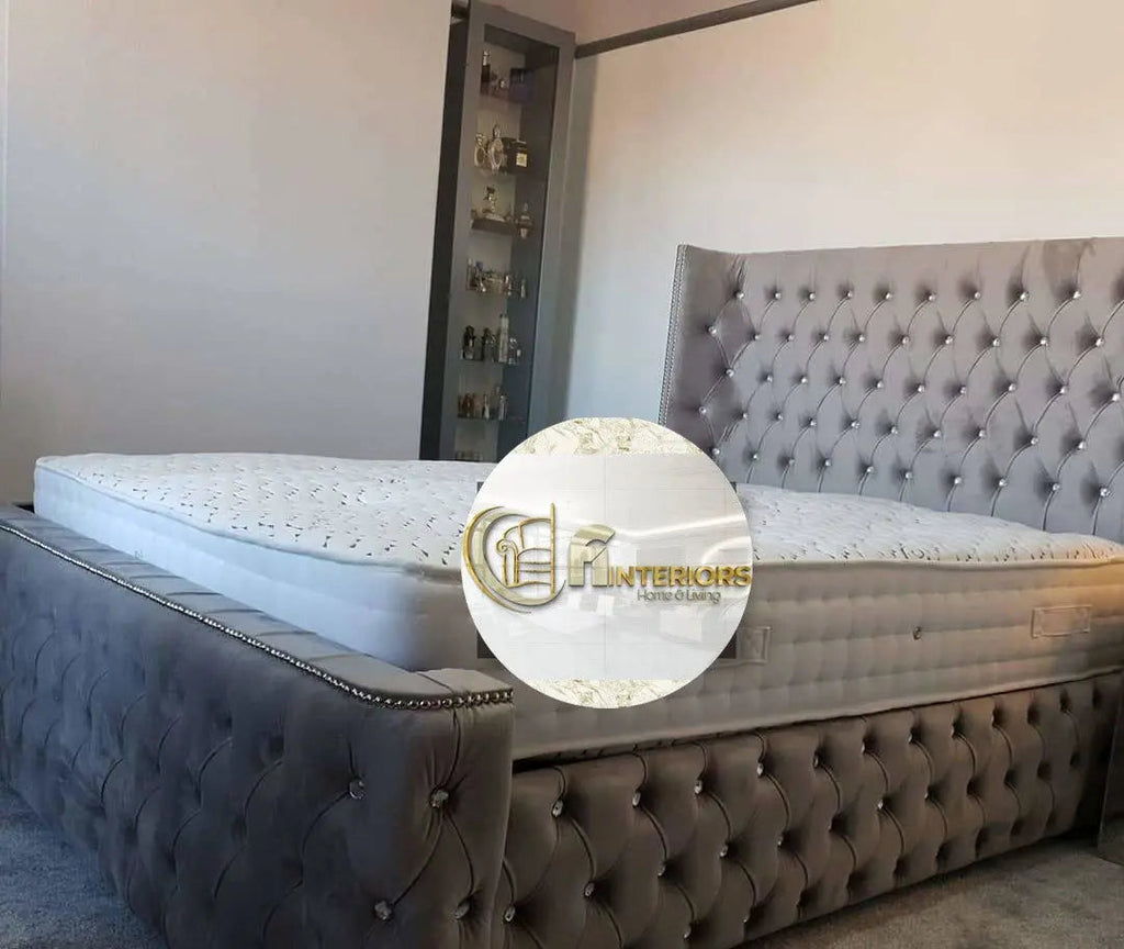 - Wingback Plush velvet headboard and foot board with diamantes or button