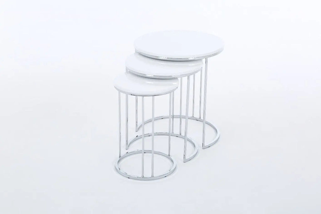Here is Our Beautiful Ayla Nest Of 3 Tables In A Beautiful Black Glass With Gold Metal or White Glass With Chrome Surround & Legs