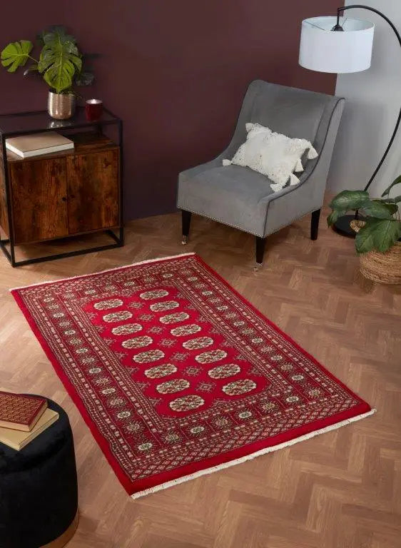 Beautiful and unique, this BOKHARA RED rug is handmade from exquisite, high-quality materials. Enjoy the lasting comfort and luxurious charm of this timeless treasure in your home .