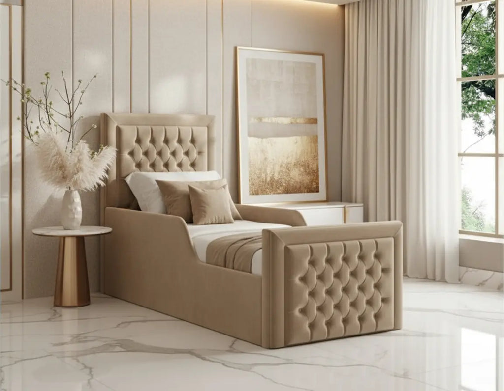 Bring timeless elegance and comfort into your child’s bedroom with the Charles Toddler Bedframe, beautifully upholstered in soft plush velvet. Its clean, classic lines and panelled design create a refined look that complements both modern and traditional interiors.