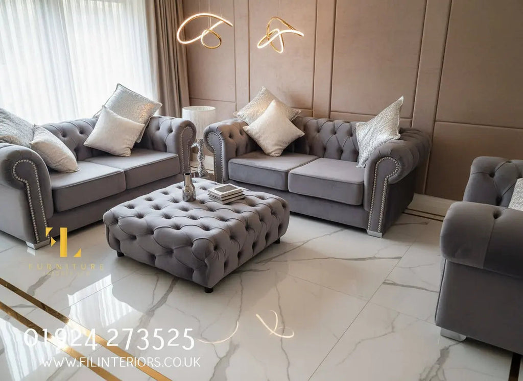For a classically styled sofa with a modern edge, the Rockingham Chesterfield Velvet Sofa Range is the perfect choice. Combining timeless design with subtle contemporary details, this piece brings sophistication and comfort to any living space.
