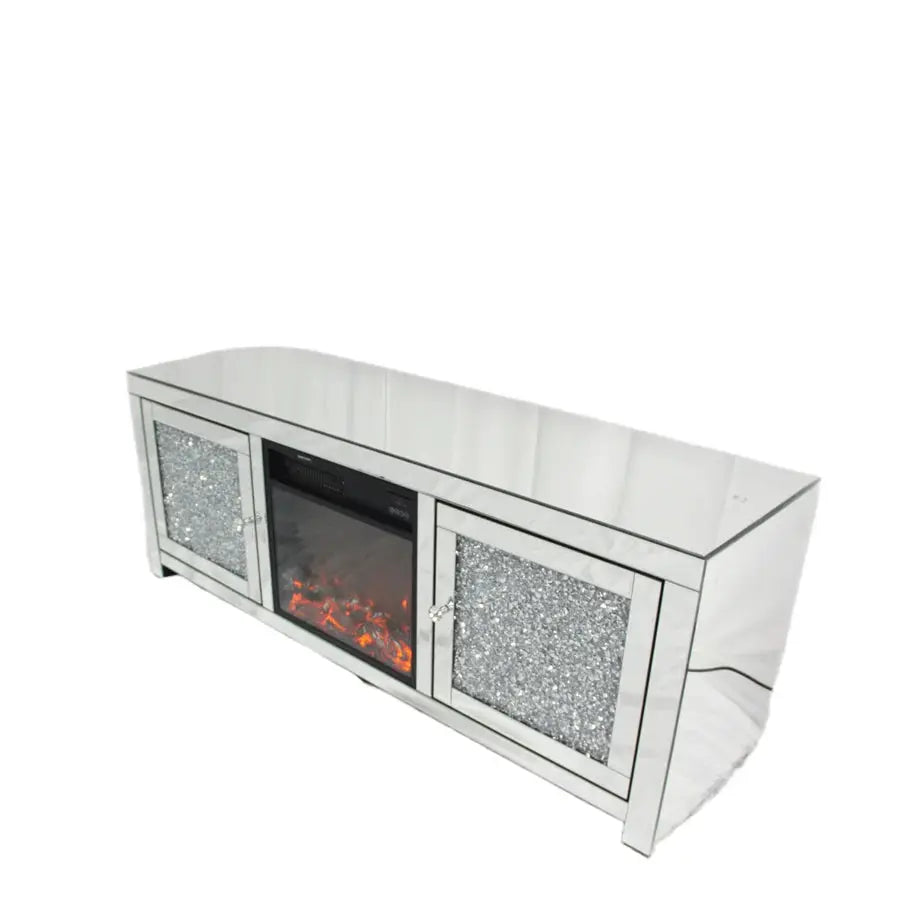 Upgrade your living space with the Roma Crushed Diamond TV Unit with Heater. This luxurious TV unit features dazzling crushed diamond detailing and a built-in heater, combining style and practicality in one elegant piece.