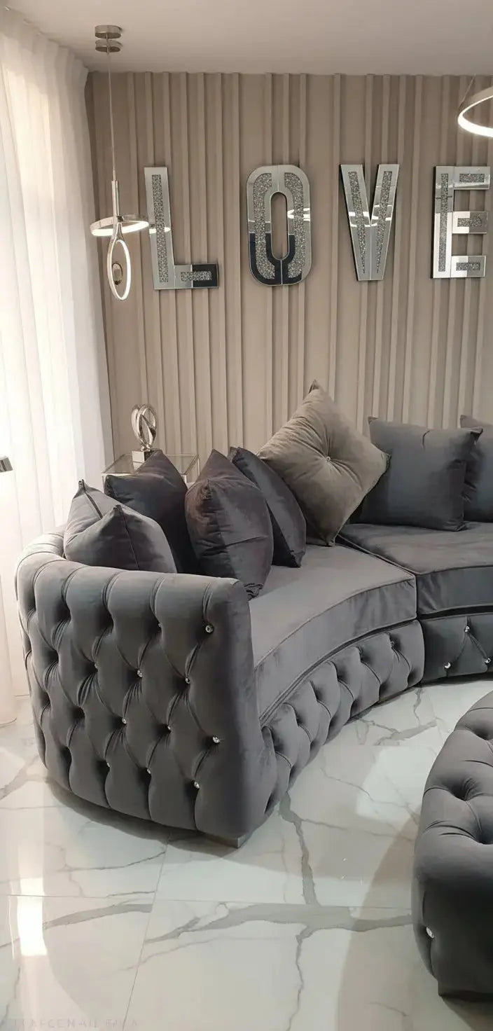 Introducing the Curved Royal Bohemia French Velvet Sofa – a stunning fusion of majestic style and modern opulence. Upholstered in your choice of sumptuous French Velvet, Plush Velvet (matte), or Crushed Velvet (shiny), this elegant curved sofa is designed to transform your living space into a sanctuary of luxury.