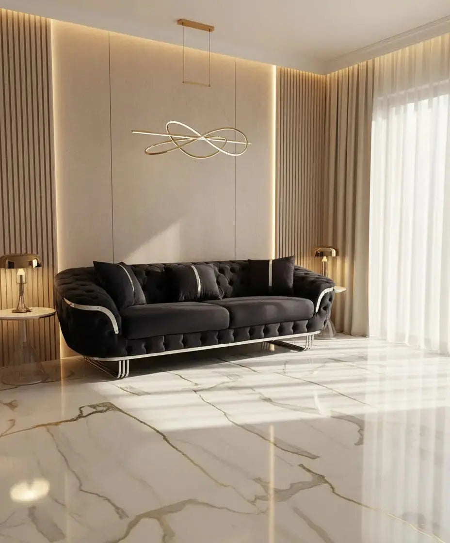 This sofa set is not only visually appealing but also offers exceptional comfort. The plush velvet upholstery feels soft to the touch, inviting you to relax after a long day. The sturdy frame ensures long-lasting durability, making it a practical choice for everyday use. Because of its supportive cushions, it’s an ideal seating solution for entertaining guests or cozy family nights.