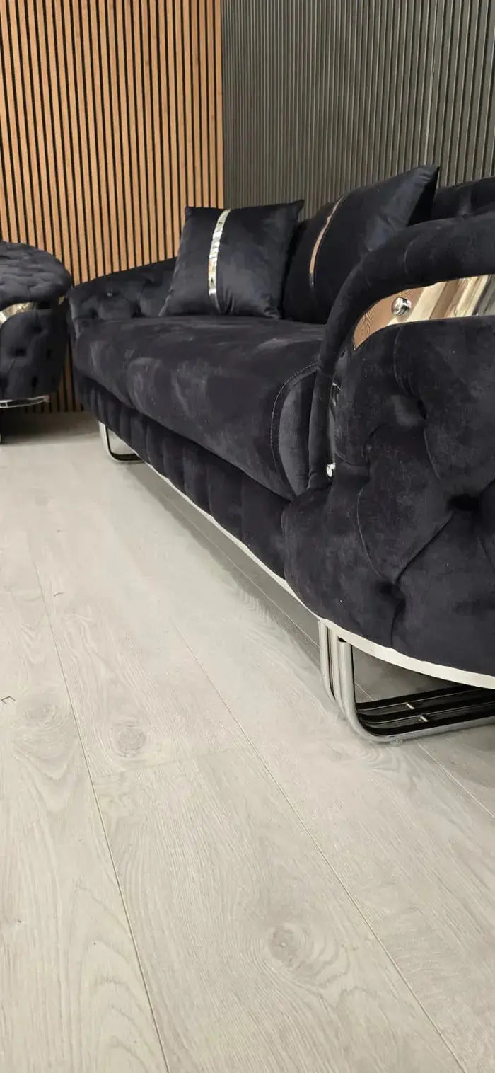 Elevate your home with the Kingston 3+2 Sofa Set, a bold fusion of modern glamour and sophisticated comfort. Upholstered in sumptuous anthracite velvet, this show-stopping suite combines deep, inviting cushioning with sleek chrome accents that reflect light and style in equal measure.