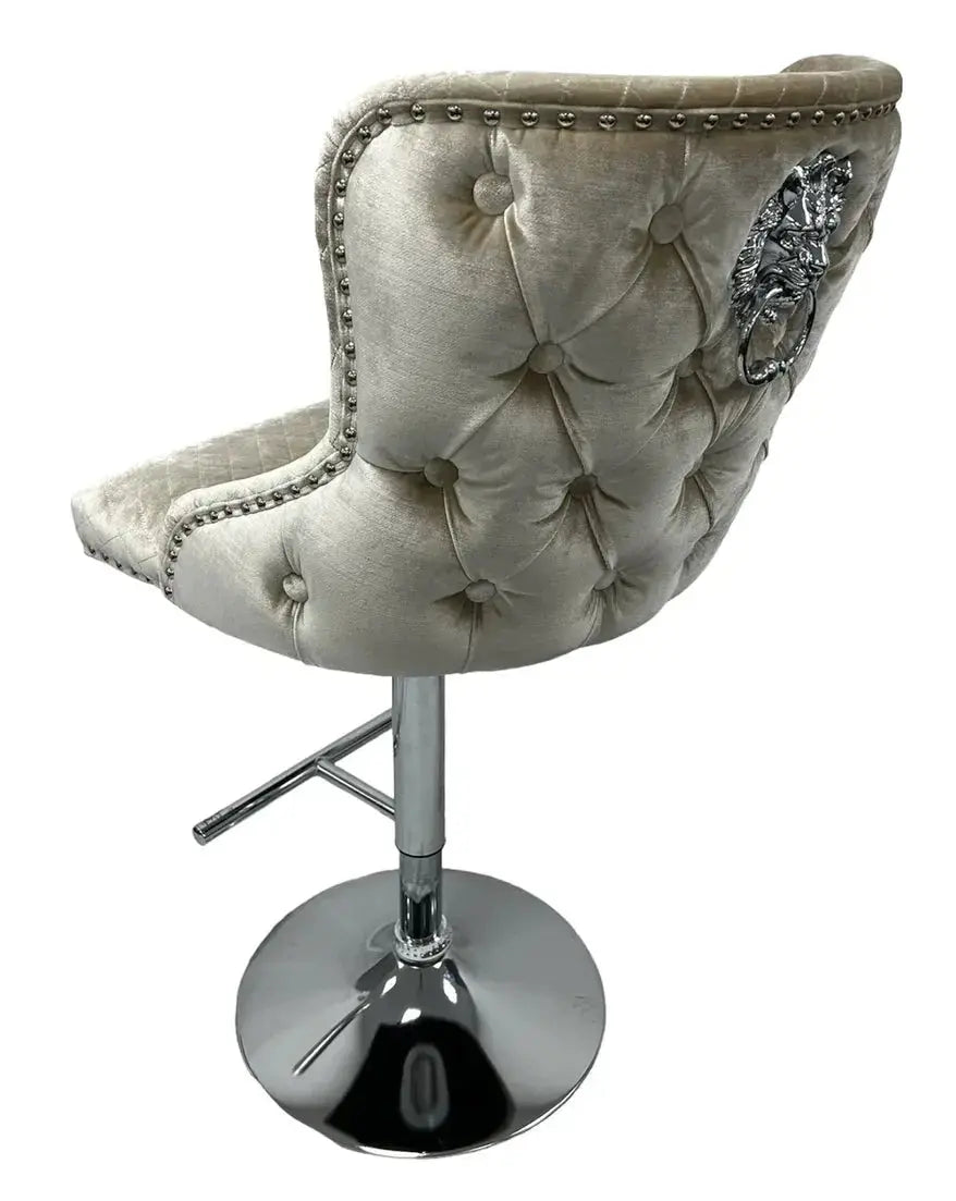 Feast your eyes on the Lewis Bar Stool in Pewter Plush Velvet, a luxury design that is guaranteed to impress