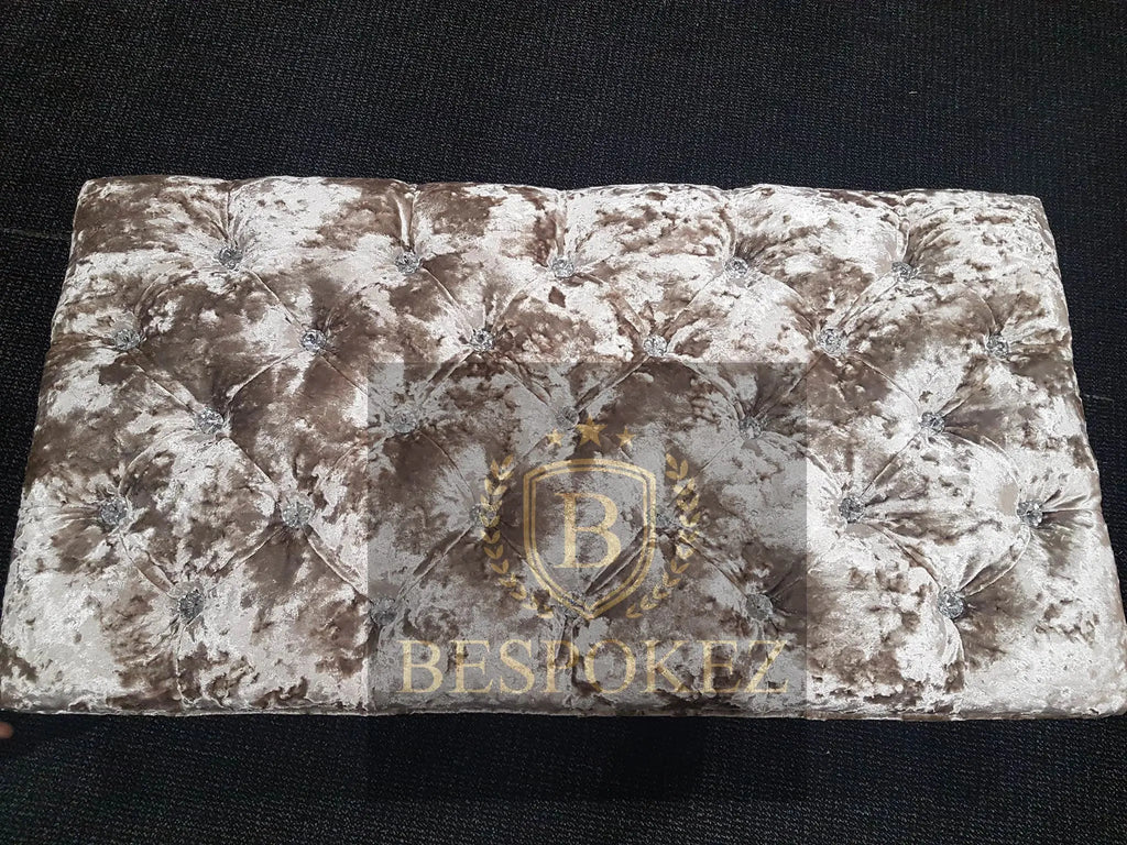 - Soft plush crushed velvet footstool diamantes or button