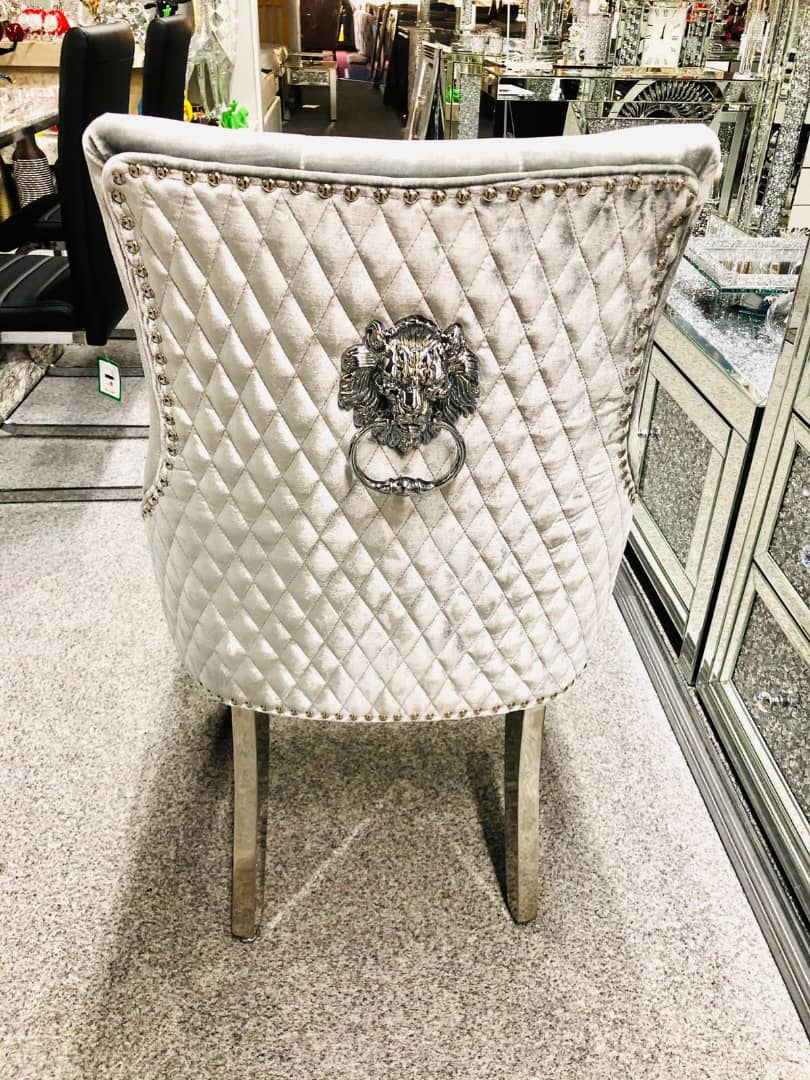 Our Majestic Dining chair cover is made of dove grey velvet which, through a traditional weaving technique, gives the fabric a warm, deep colour and a soft surface with a dense pile and light, reflective shine. This velvet is a soft, luxurious fabric that is resistant to abrasion and easy to clean.