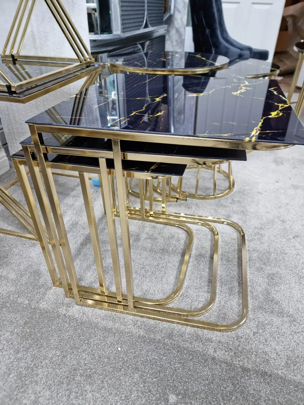 MANECA NEST OF TABLES 3 BLACK AND GOLD