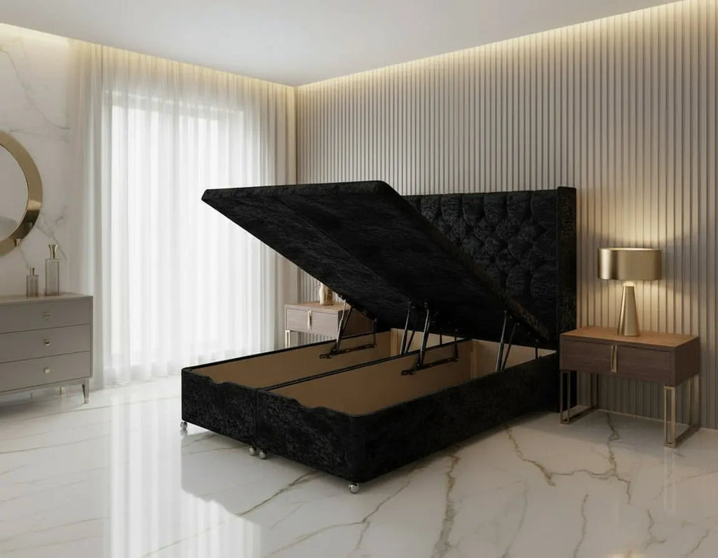 The Marina Wingback Divan Ottoman Bed is an elegant, luxurious statement piece designed to bring sophistication and comfort to your bedroom. Featuring a tall 54" wingback headboard, this bed combines grandeur with practicality — a true centrepiece for any modern home.