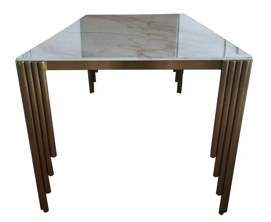 Bring a touch of refined luxury to your home with the Mayfair Gold Ceramic Dining Table – a stunning blend of sophistication and contemporary design. This elegant dining piece is crafted to make a bold statement while maintaining practicality for everyday use.