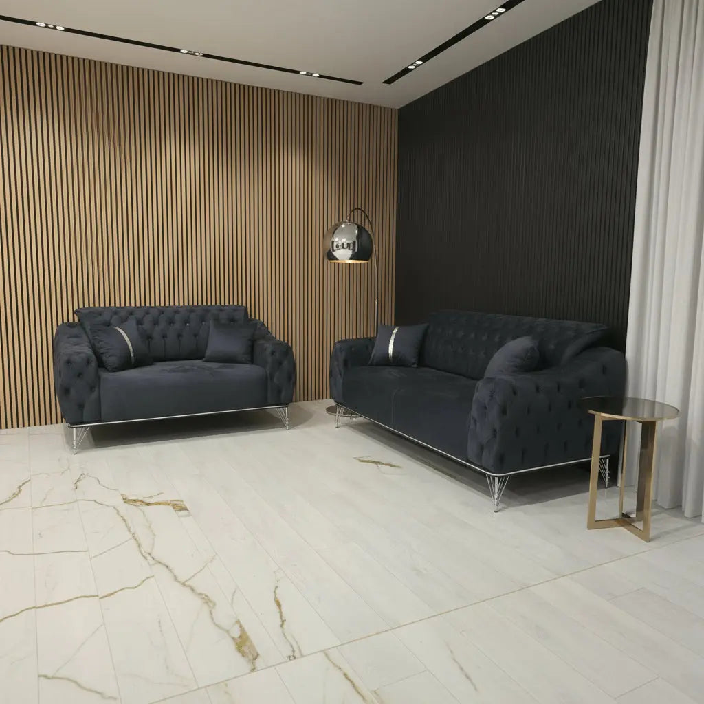 Indulge in timeless elegance and luxurious comfort with the Monalisa 3+2 Seater Sofa Set. Upholstered in soft steel velvet and accented with sleek chrome legs and detailing, this stunning sofa set blends classic sophistication with contemporary design. Perfect for both entertaining and relaxing, the Monalisa set transforms any living space into a stylish and inviting retreat.