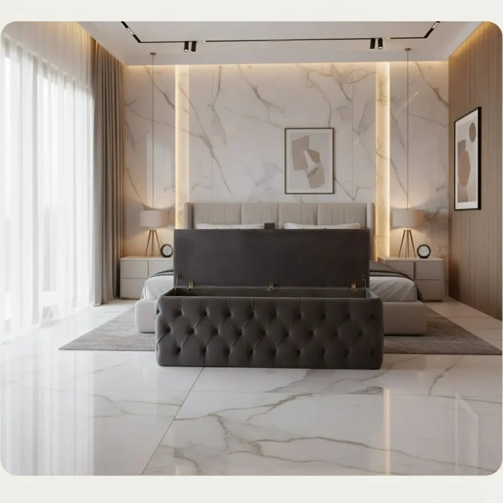 Bring a touch of timeless sophistication to your home with the Chesterfield Ottoman Storage Box β a handcrafted masterpiece by FI Interiors Ltd. Designed to combine luxurious crushed velvet with everyday practicality, this ottoman is perfect for adding elegance and functionality to any room.