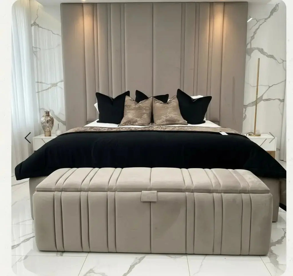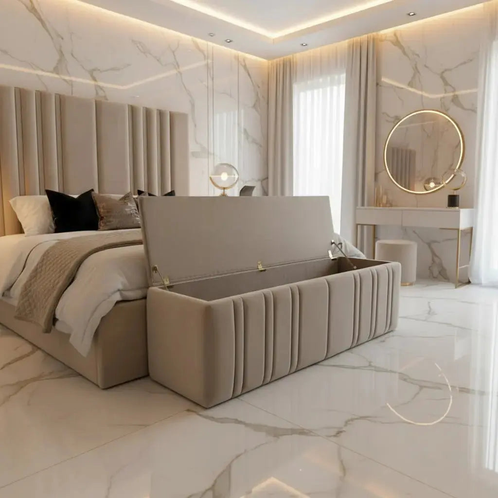 Handcrafted in the UK, the Rosie Ottoman combines premium materials with timeless design. Created to maximise storage and style, it’s an elegant addition to bedrooms, living rooms, or dressing areas.