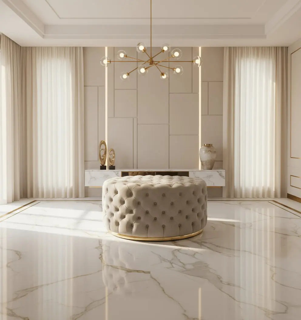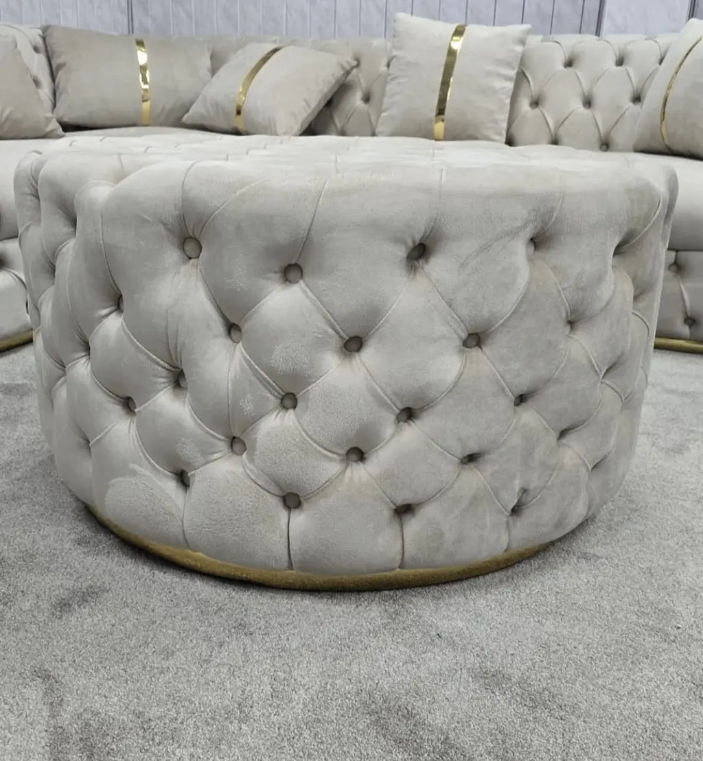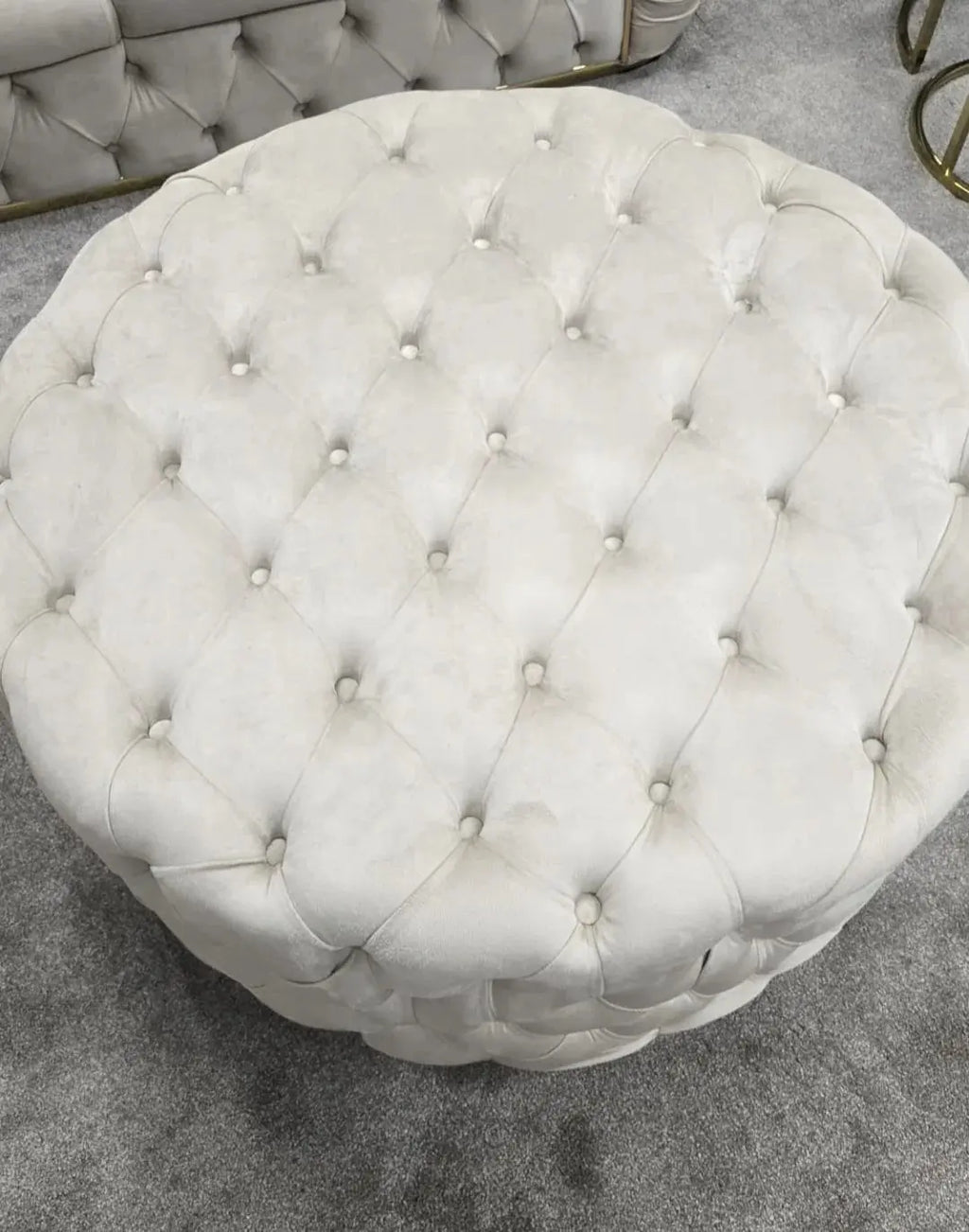 Add a touch of luxury to your living space with the Round Upholstered Footstool in Champagne & Gold. Expertly handcrafted with premium upholstery and a beautifully tufted circular design, this statement piece blends elegance, comfort, and functionality.