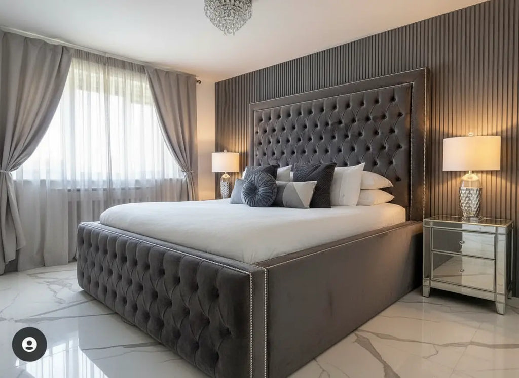 Elegant Chesterfield-style headboard and footboard with optional diamantes or fabric buttons