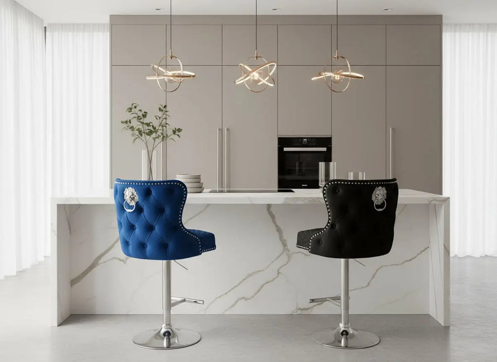 The Valentino Barstool not only elevates the style of your space but also offers premium quality. Made from high-grade materials, this barstool features a striking lion knocker back design that adds a touch of sophistication to any room. The adjustable height ensures that it fits perfectly under your bar or kitchen island, making it both practical and luxurious.