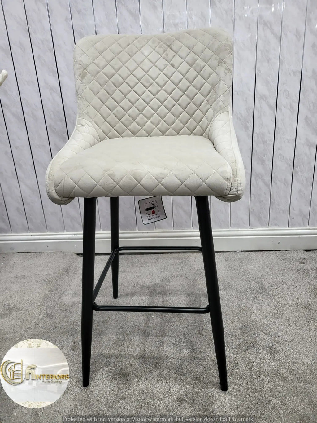 The Vegas Velvet Barstool offers a unique style of cross stitched quilt for an exceptionally comfortable seating experience. The barstool has been designed with robust construction in mind, with a solid wood frame to provide superior strength and durability. The velvet upholstery adds a luxe touch to this stylish piece.