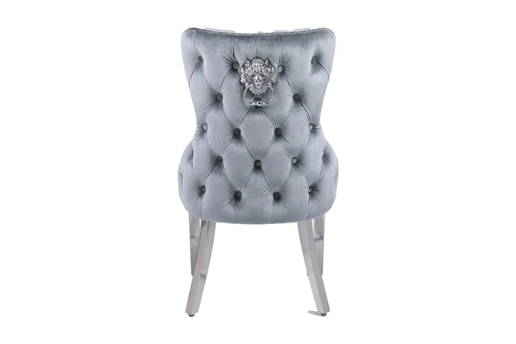 Create a dining experience that exudes glamour and refinement with the Victoria Lion Knocker Dining Chair — where timeless design meets modern luxury.